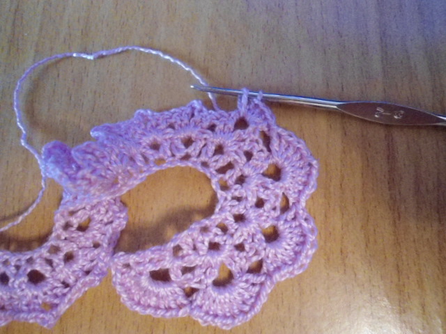 3р. - Первый лепесток начинаем с 3 в.п. ,в каждую арочку предыдущего ряда провязываем по 9 СН.
