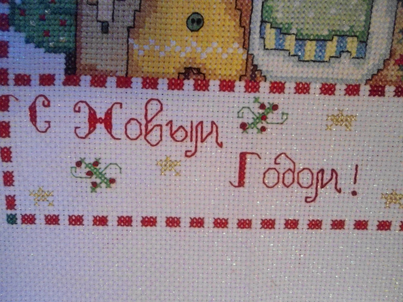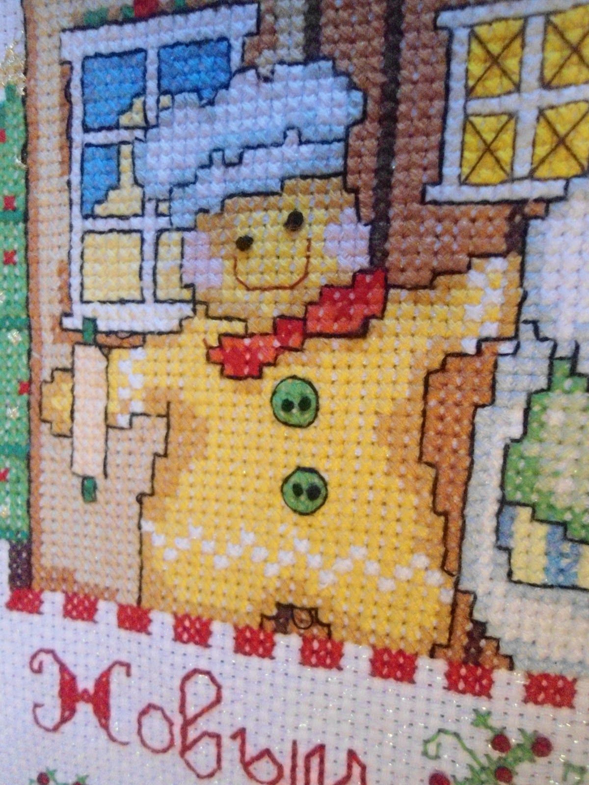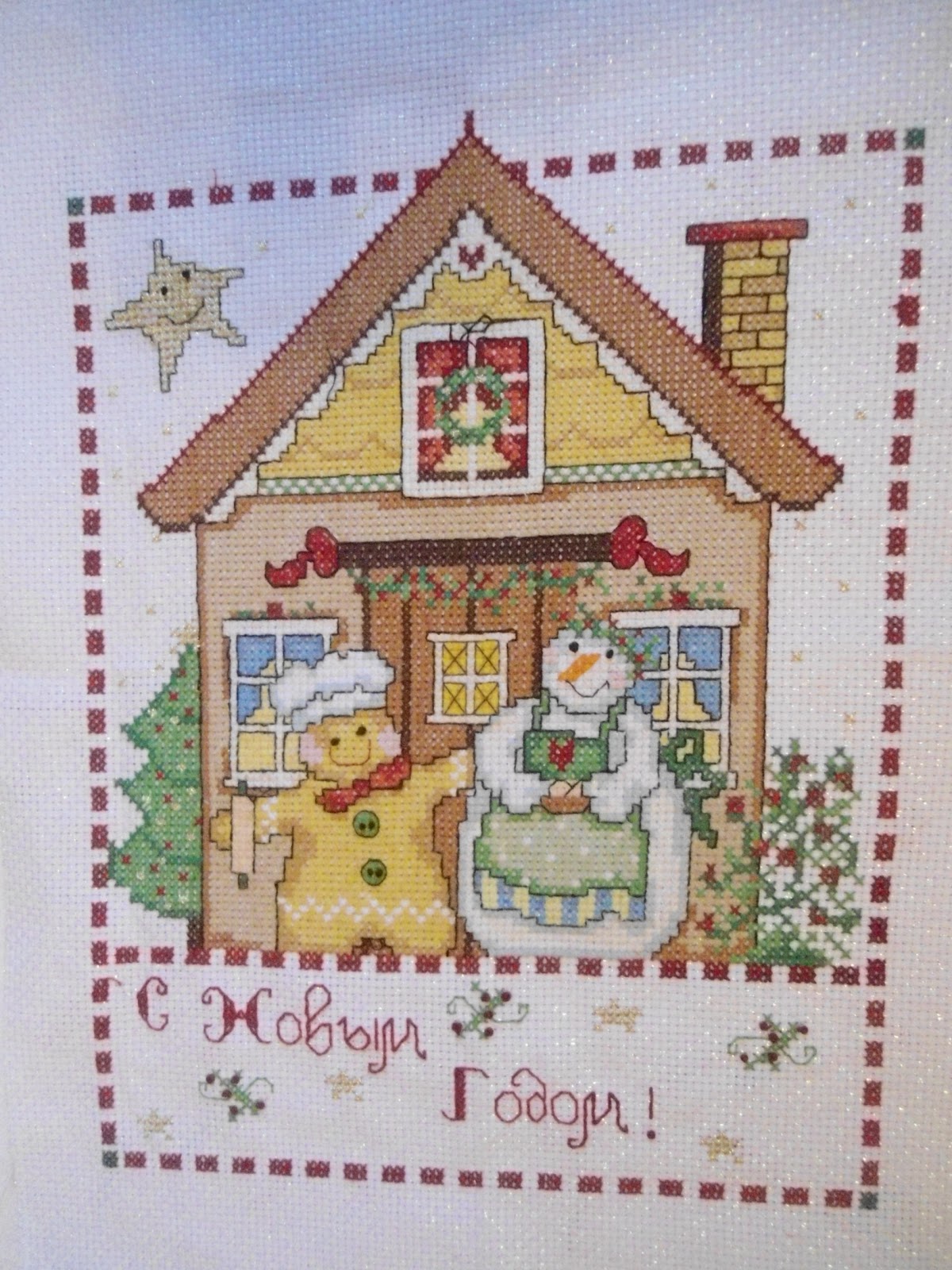 Схему для этой картины я взяла из журнала Формула рукоделия. Там столько интересного. Автор этого произведения Гейл Бусси. Я взяла на себя смелость внести некоторые изменения- там была надпись на английском языке "Сахар и пряности- отличный символ Рождества" А я решила, что картина предназначена для Российской семьи, т.е для моей))), то пусть будет простое русское поздравление. Зато всем понятно. Уж пусть извинит меня автор идеи)))