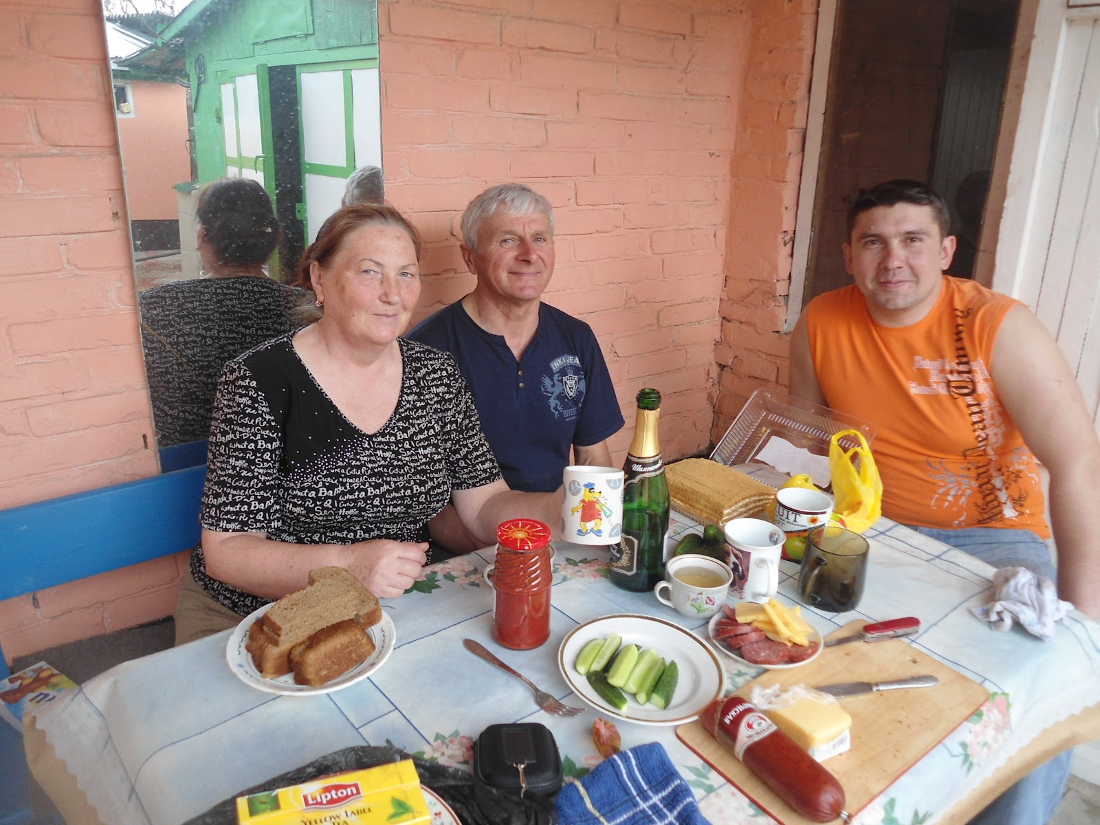 Первое скромное застолье в новом доме. Вернее во дворе. |